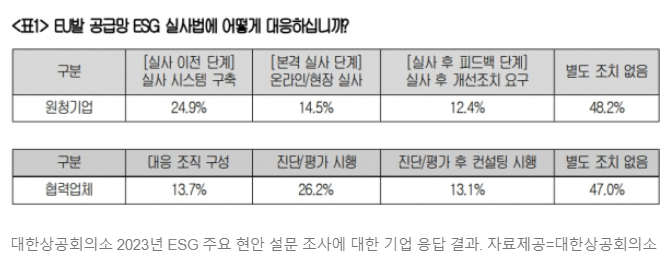원청 48.2%, 협력 업체 47.0% “ESG 별다른 단기 조치 없어”