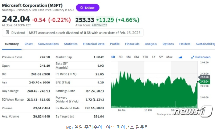 MS의 주가는 시간외거래에서 4.66% 급등한 253.33 달러를 기록하고 있다. 앞서 정규장은 0.22% 하락 마감했었다.