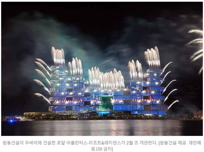 쌍용건설은 두바이에 건설한 '로얄 아틀란티스 리조트&레지던스'가 2월 초 완공된다고 26일 밝혔다.