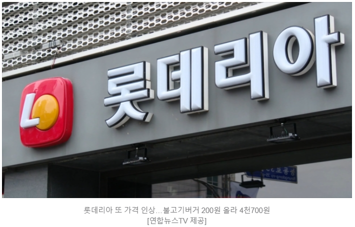2. 롯데리아 가격 또 인상 - 불고기버거 200원 올라 4700원