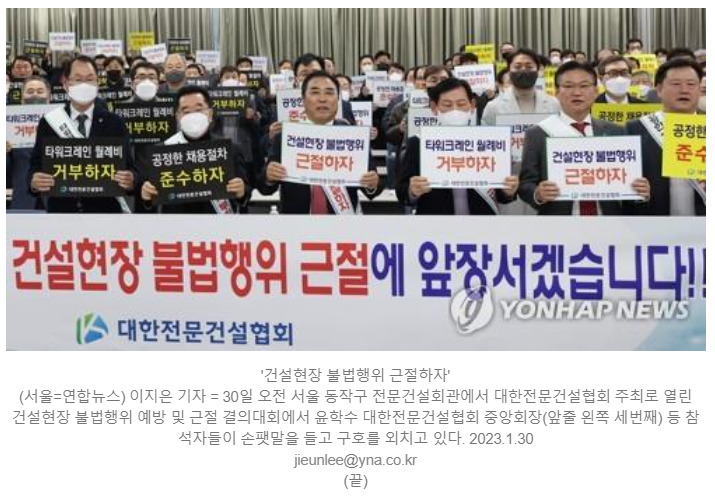 전문건설협 "건설현장 불법행위 근절돼야…손해배상 추진"
