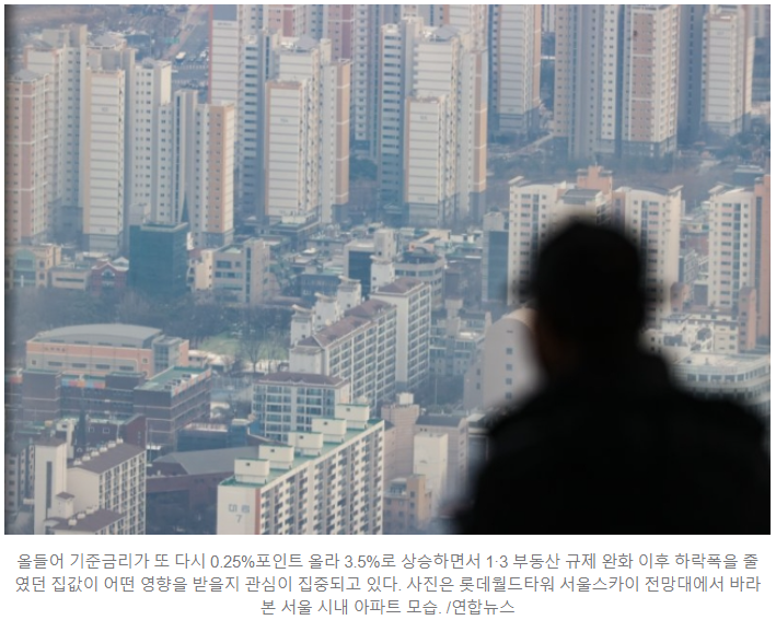 3.5%로 오른 기준금리에 연동된 주택담보대출 이자부담은 더 증가하고 수요자는 이를 주택시장의 악재로 인식하며 주택구입 자금조달 여신환경은 더 나빠졌다는 것이다.
